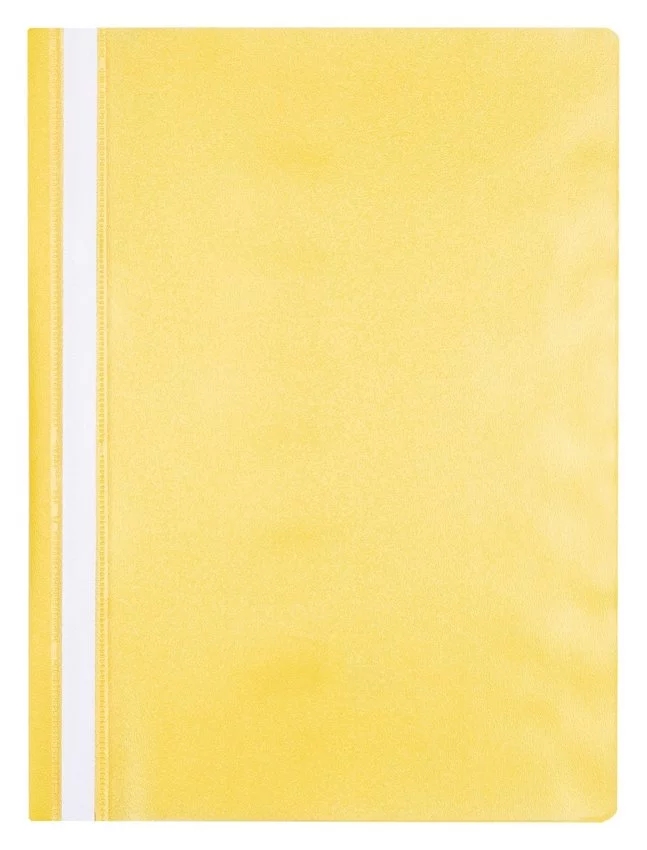 Skoroszyt OFFICE PRODUCTS, 120/180 mic, PP, żółty — Ekonomiczny, wykonany z polipropylenu, miękki metalowe wąsy niewpinany wymienny, dwustronnie zapisywalny papierowy pasek brzegowy kieszonka umożliwiająca wymianę paska na każdym skoroszycie kod EAN