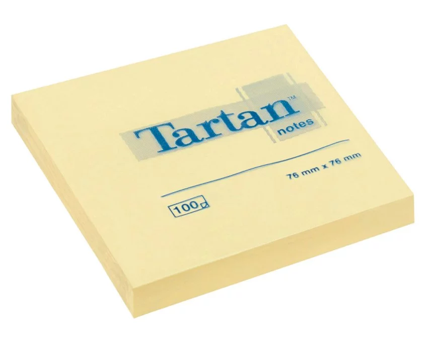 Bloczek samoprzylepny TARTAN, 76x76mm, 12x100kart., żółty — Popularne karteczki samoprzylepne w dobrej cenie Przyklejasz do papieru i odklejasz bez śladu