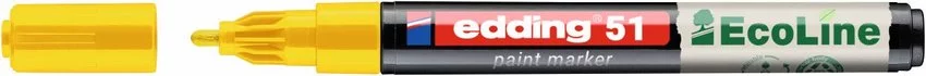 Marker olejowy na bazie wody e-51 EDDING EcoLine, 1-2mm, żółty — Profesjonalny marker olejowy do wysoce kryjącego i trwałego znakowania i etykietowania na ciemnych, przezroczystych i gładkich materiałach przyjazny dla środowiska, bezwonny tusz na bazie wody z niską zawartością lotnych związków organicznych (LZO) obudowa markera wykonana w co najmniej 75% z materiałów pochodzących z recyklingu poużytkowego tusz markera jest odporny na działanie światła, szybko wysycha i jest wodoodporny pierwszy marker olejowy z możliwością ponownego napełniania marki Edding! Dostępne są odpowiednie zapasowe końcówki wyprodukowany w Niemczech