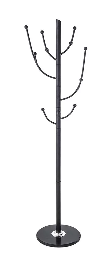 Wieszak na ubrania OFFICE PRODUCTS Helsinki, stojący, czarny — Wieszak stojący na odzież wierzchnią wykonany z trwała stali malowanej proszkowo z marmurową podstawą, która zapewnia stabilność posiada 11 haczyków do odwieszania ubrań świetnie nadaje się w domowym wnętrzu, poczekalni czy biurze