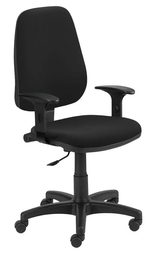 Fotel biurowy OFFICE PRODUCTS Paros, czarny — Klasyczny, ergonomiczny fotel biurowy doskonale sprawdzi się też w pokoju nastolatka tapicerowane, szerokie siedzisko wykonane jest z pianki wylewanej mechanizm ruchowy CPT regulacja kąta pochylenia oparcia poprzez blokowanie pokrętłem regulacja wysokości oparcia poprzez blokowanie pokrętłem regulacja odległości oparcia od siedziska regulacja wysokości siedziska za pomocą dźwigni blokada w wielu pozycjach korzystanie z mechanizmu tylko w pozycji zablokowanej podłokietniki regulowane góra-dół podstawa czarna, nylonowa O 600mm (poliamid + 30% włókno szklane) kółka twarde do powierzchni miękkich (dywanowych) – średnica 50 mm posiada atest badań trwała w zakresie bezpieczeństwa użytkowania