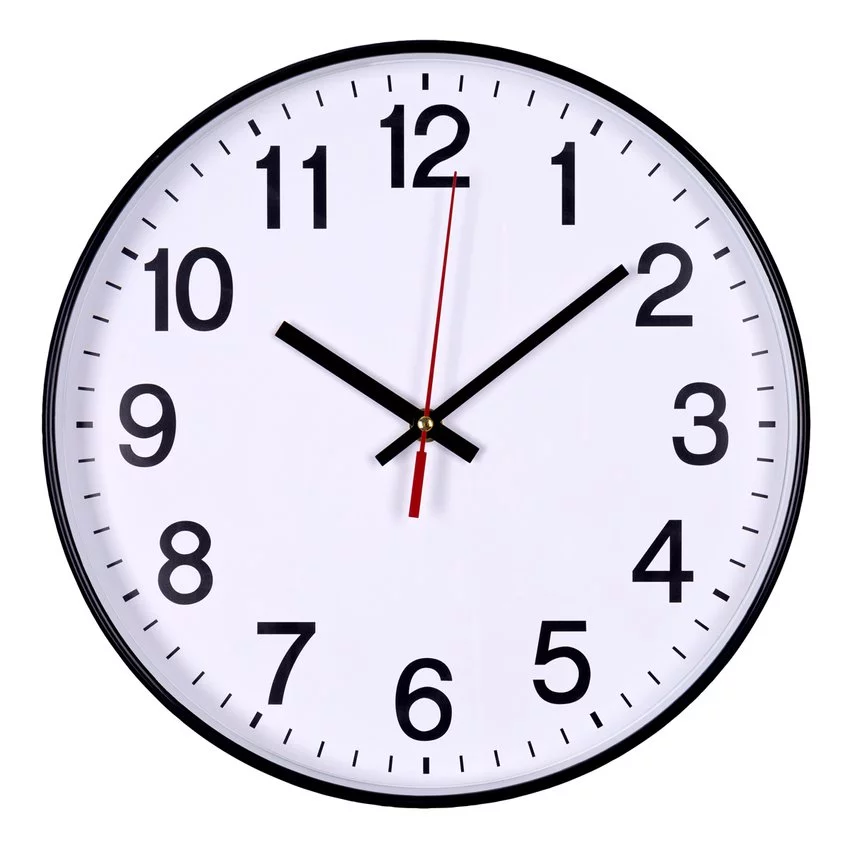 Zegar ścienny OFFICE PRODUCTS, plastikowy, 34cm, czarny — Zegar ścienny wykonany z tworzywa sztucznego z okrągłą białą tarczą otoczoną ramą i zabezpieczony plastikową szybką nowoczesny design oraz czytelna typografia cyfr dwie czarne wskazówki plus jedna - czerwona - sekundowa zegar wyposażony w mechanizm kwarcowy zasilany 1 baterią AA bezgłośna praca zegara, bez tradycyjnego tykania zgodność z normami EN IEC 55014-1:2021 i EN IEC 55014-2:2021 oraz europejską dyrektywą RoHS
