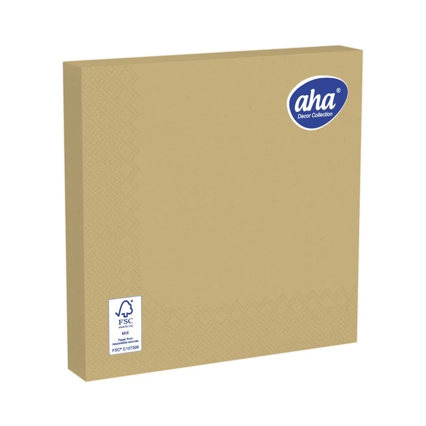 Serwetki AHA, 3-warstwowe, składanie 1/4, 33x33cm, 20 szt., złote — Serwetki wykonane w 100% z celulozy