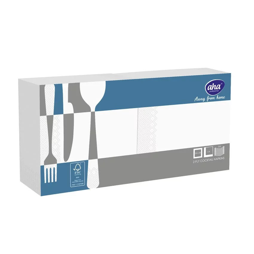 Serwetki AFH AHA, 2-warstwowe, składanie 1/4, 24x24cm, 200 szt., białe — Doskonały wybór dla branży hotelowej, eventowej oraz szeroko pojętej gastronomii