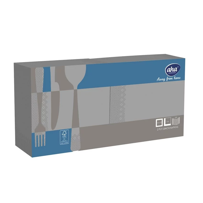 Serwetki AFH AHA, 2-warstwowe, składanie 1/4, 33x33cm, 250 szt., szare — Doskonały wybór dla branży hotelowej, eventowej oraz szeroko pojętej gastronomii