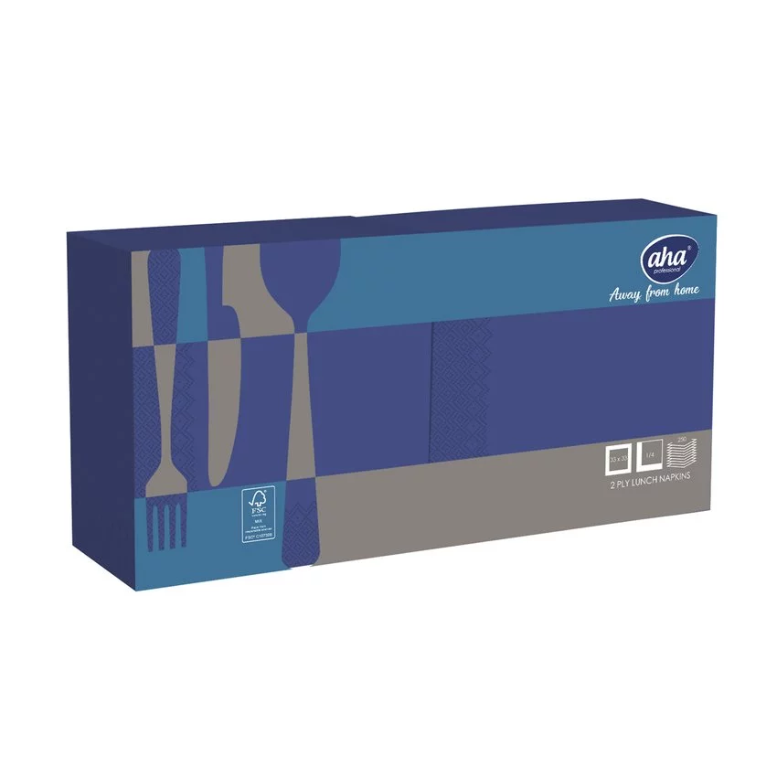 Serwetki AFH AHA, 2-warstwowe, składanie 1/4, 33x33cm, 250 szt., granatowe — Doskonały wybór dla branży hotelowej, eventowej oraz szeroko pojętej gastronomii