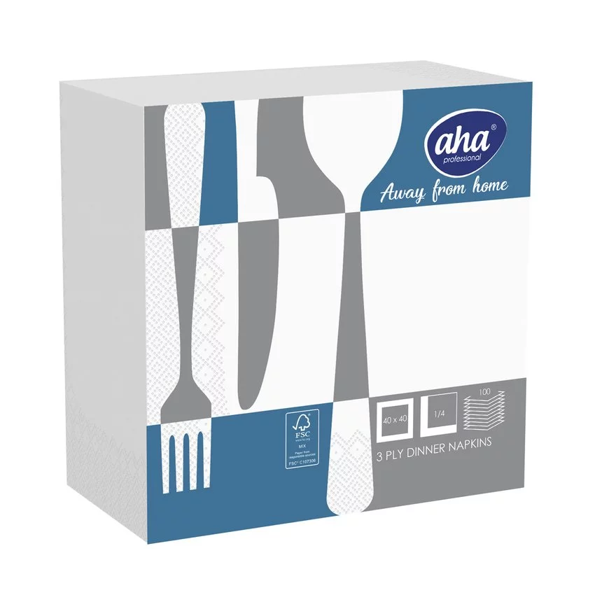 Serwetki AFH AHA, 3-warstwowe, składanie 1/4, 40x40cm, 100 szt., białe — Doskonały wybór dla branży hotelowej, eventowej oraz szeroko pojętej gastronomii