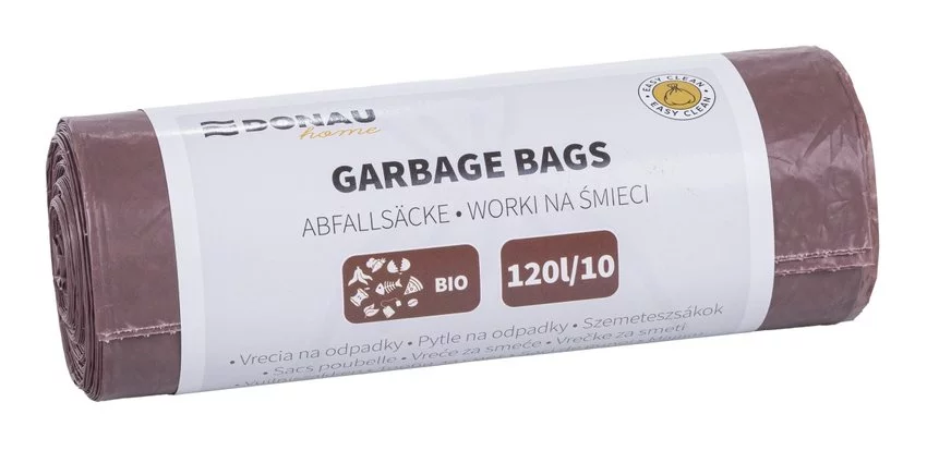 Worki na śmieci DONAU HOME, do segregacji, odpady BIO (LDPE), 120l, 10 szt., brązowe — Stworzona do gromadzenia odpadów biodegradowalnych w ramach selektywnej zbiórki wykonane z trwała tworzywa LDPE, odpornego na rozdarcia i wilgoć idealne do codziennego użytku zarówno w gospodarstwach domowych, jak i przestrzeniach publicznych 10 szt. W j. S.