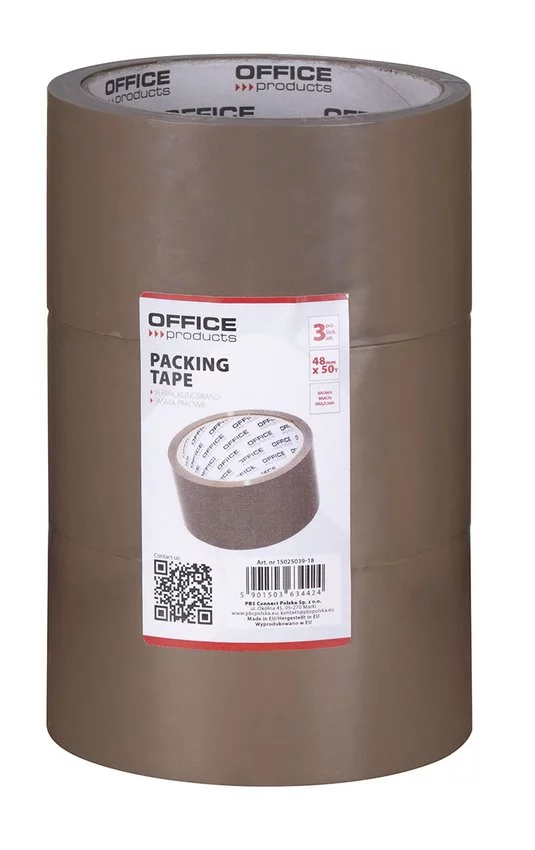 Taśma pakowa OFFICE PRODUCTS, 48mm x 50y, 36mic, 3szt., brązowa — Taśma pakowa PP z klejem akrylowym doskonała do różnego rodzaju zastosowań