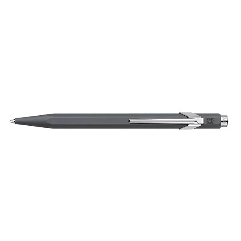 Długopis CARAN D’ACHE 849, szary — Długopis szwajcarskiej marki Caran d’Ache z kolekcji 849 Classic Line – antracytowy szary. Modny, kultowy i ponadczasowy. Długopis 849 to wizytówka marki Caran d’Ache. Długopis wykonany z aluminium o sześciokątnym przekroju, idealnie dopasowany do dłoni. Korpus długopisu w antracytowym, szarym kolorze. Pokryty metodą malowania proszkowego. Posiada przyciskowy mechanizm wysuwu wkładu i bardzo solidny klips. Wyposażony w bardzo pojemny wkład długopisowy Goliath niebieski M, który pozwoli nam na zapisanie 600 stron A4. Wyprodukowany w Szwajcarii.