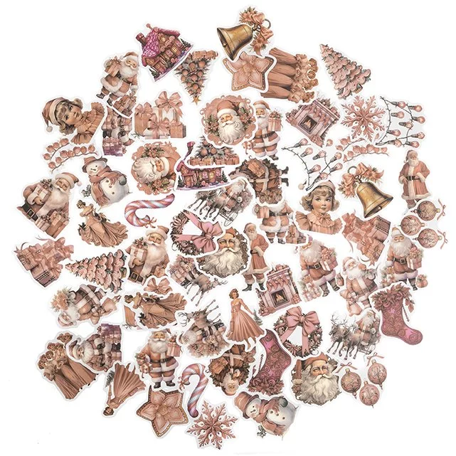 Naklejki Winylowe Świąteczne 64szt Vintage Pink /DpCraft