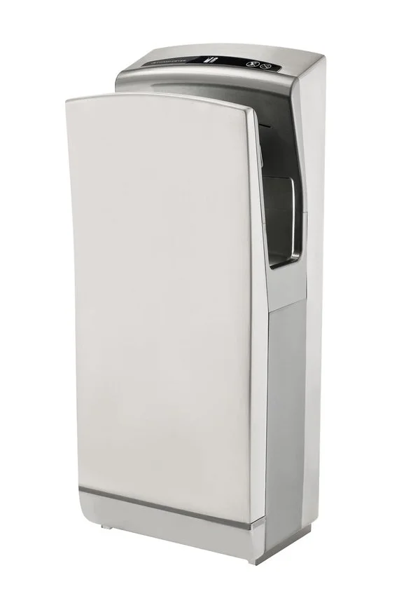 Suszarka kieszeniowa HD1EFK Jet Steel to profesjonalne urządzenie do szybkiego i higienicznego suszenia rąk, przeznaczone do intensywnie użytkowanych toalet publicznych. Wyposażona w bezszczotkowy, wydajny silnik oraz zaawansowany system nawiewu, generuje strumień powietrza o prędkości ponad 340 km/h, co pozwala wysuszyć dłonie w około 7 sekund.