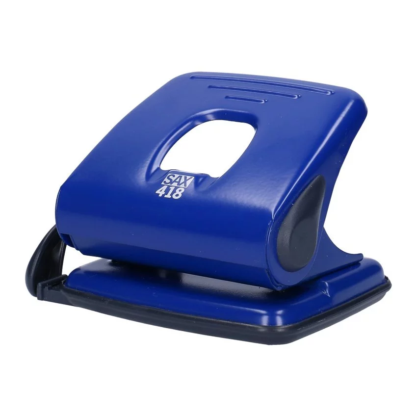 Dziurkacz biurowy SAX418 to propozycja dla osób, które potrzebują małego dziurkacza, który sprawdzi się zarówno w domu, szkole jak i małym biurze. Model 418 firmy SAX wykonany jest w całości z metalu co sprawia, iż jest solidny i bardzo wytrzymały. Dodatkowo dziurkacz posiada ogranicznik formatu a jego zdolność dziurkowania to do 25 kartek papieru jednocześnie. Producent daje na dziurkacz 10 lat gwarancji.