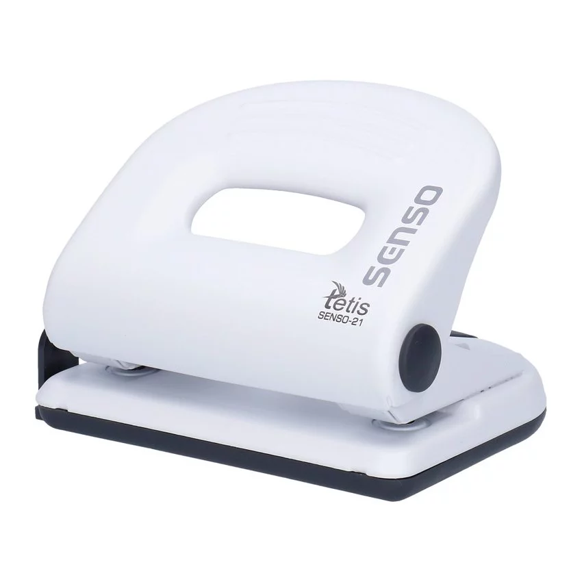TETIS Senso 21 to mały dziurkacz dający duże możliwości. Całość wykonana jest z metalu a jego wykończenie z tworzywa sztucznego. Jednorazowo jest on w stanie przedziurkować do 25 kartek papieru o grubości 80 g/m2. Specjalny uchylany pojemnik na ścinki pozwala je usunąć bez konieczności zdejmowania całego spodu. Dodatkowo dziurkacz posiada wskaźnik środka strony oraz ogranicznik formatu dla jeszcze bardziej precyzyjnego rozmieszczenia dziurek. Producent daje na dziurkacz 5 lat gwarancji.