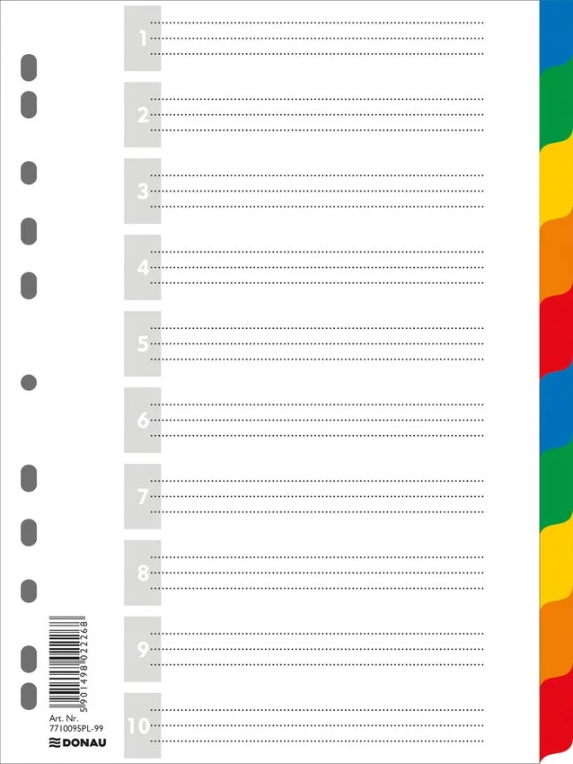Przekładki PP A4 Kolorowe 10k /Donau