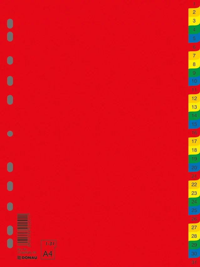 Przekładki PP A4 Numeryczne 1-31 Kolorowe /Donau