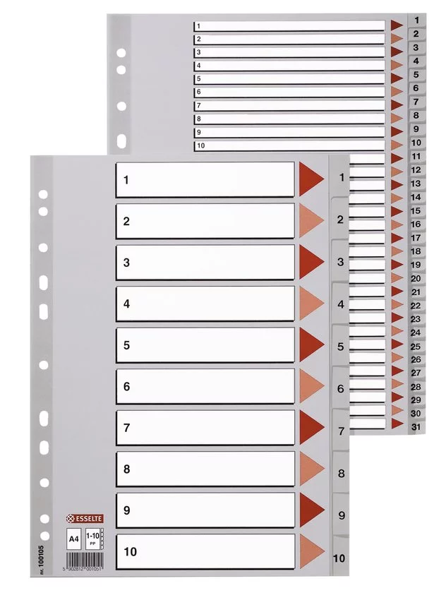 Przekładki PP A4 Numeryczne 1-10 Szara /Esselte 100105