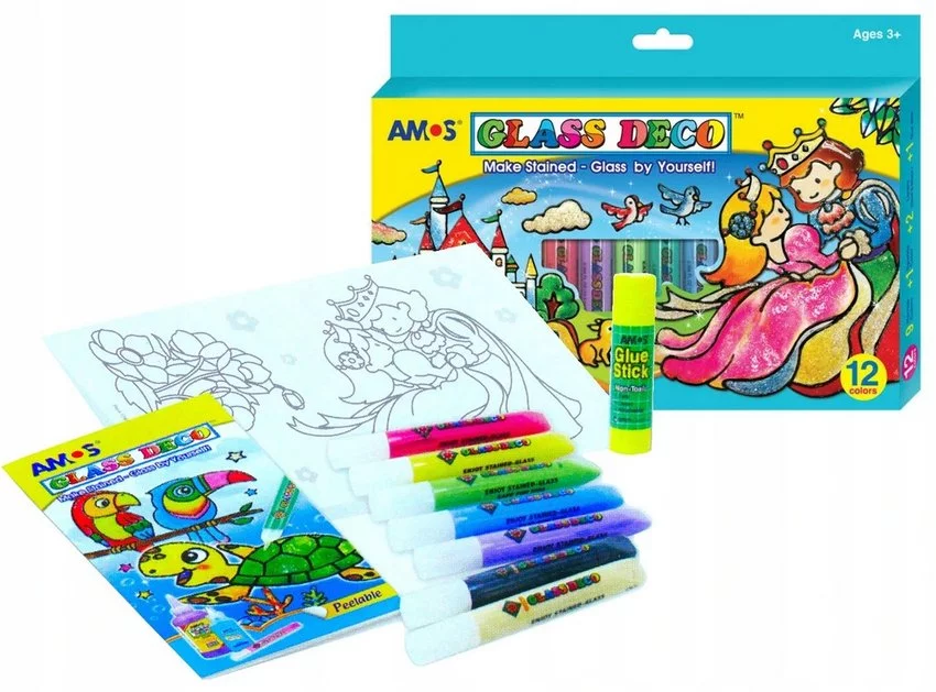 Farby Witrażowe 12Kol + Klej Gd10P12R /Amos