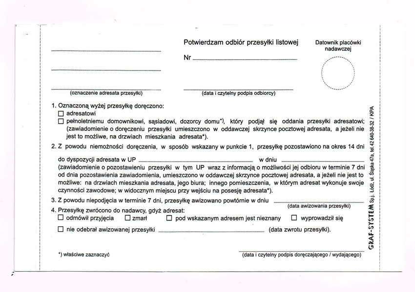 Zwrotne Potwierdzenie Odbioru 2 Taśmy KPA A'100szt.