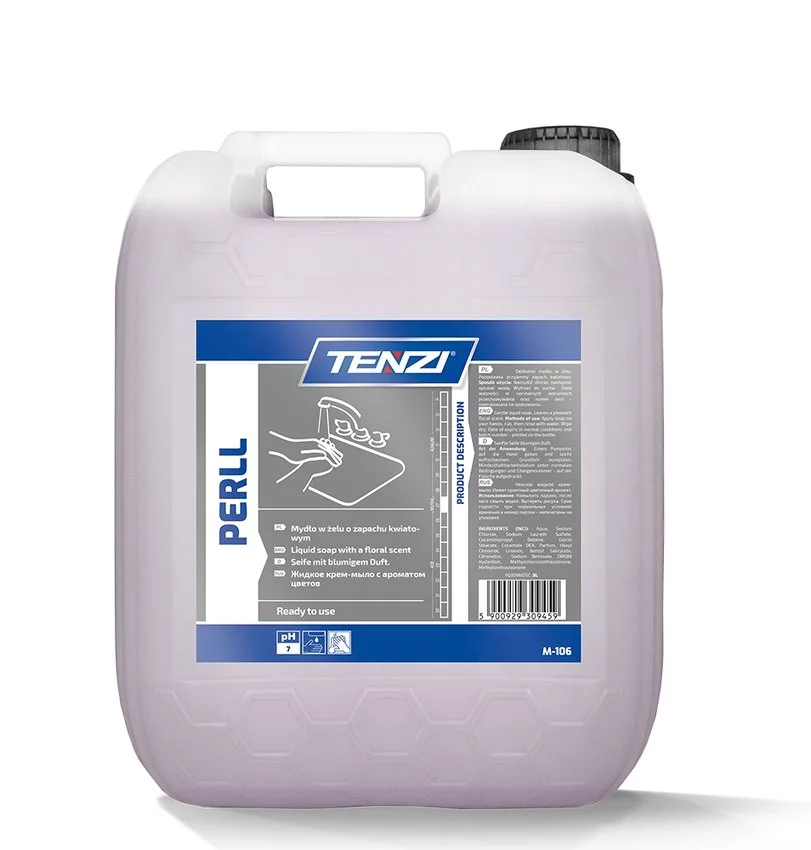 - Antybakteryjne mydło w płynie Tenzi Perll 5L o delikatnym, kwiatowym zapachu. Średniopieniące, ekonomiczne, z gliceryną, nawilża, nie wysusza skóry, przebadane dermatologicznie. Do mycia rąk i ciała.