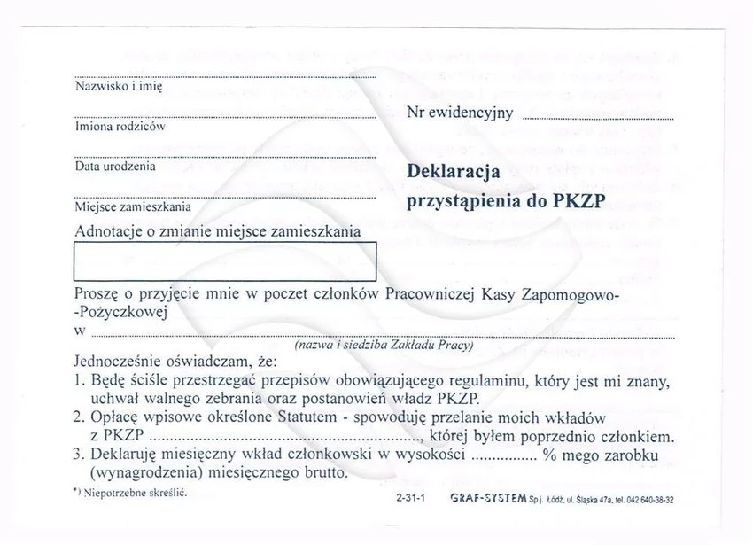 Deklaracja Przystapienia do PKZP A6 2-31-1 /Graf
