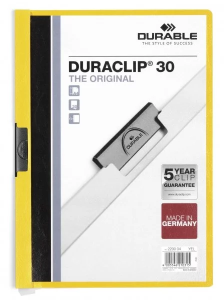 Skoroszyt z Klipem A4 PVC Duraclip 30 Kartek Żółty /Durable 220004