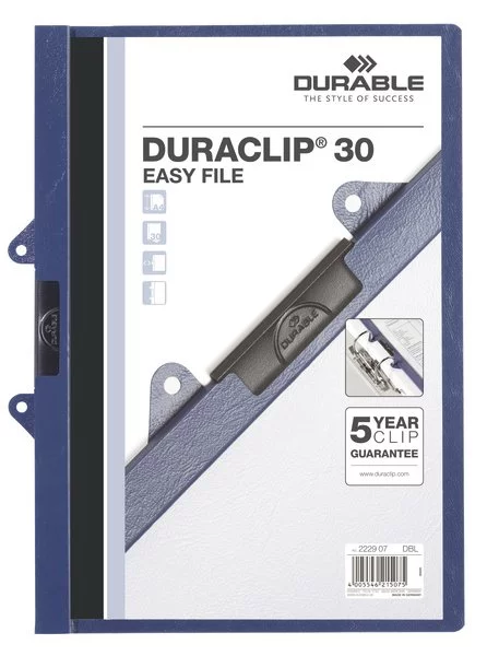 Skoroszyt Zaciskowy A4 Duraclip Easy File z Wkładką 30 Kartek Granatowy /Durable 222907