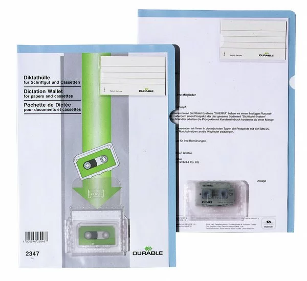 Obwoluta z Kieszenią na Kasetę do Dyktafonu L A4 Niebiesko-Przezroczysta /Durable 234706