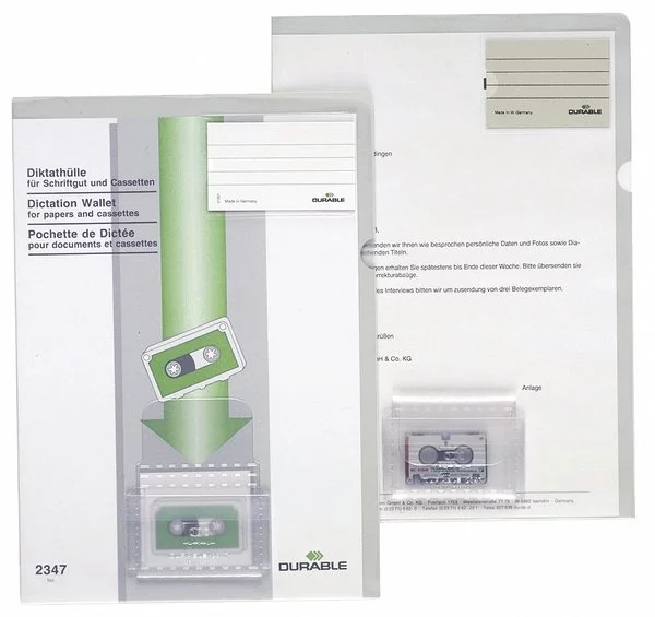 Obwoluta z Kieszenią na Kasetę do Dyktafonu L A4 Beżowo-Przezroczysta /Durable 234716