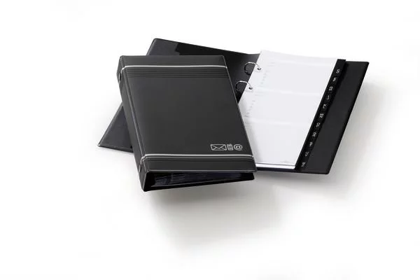 - Wyposażony w 25 kart teleadresowych z możliwością 150 wpisów