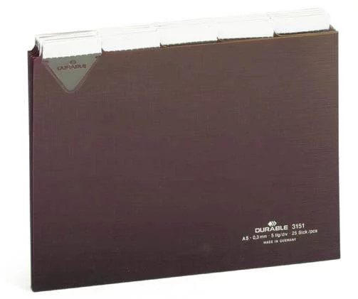Przekładki do Kartotek 5/5 PCW 0,3mm Indeksy 40mm Zgrzane Poziome A4 25cz. Brązowe /Durable 314111