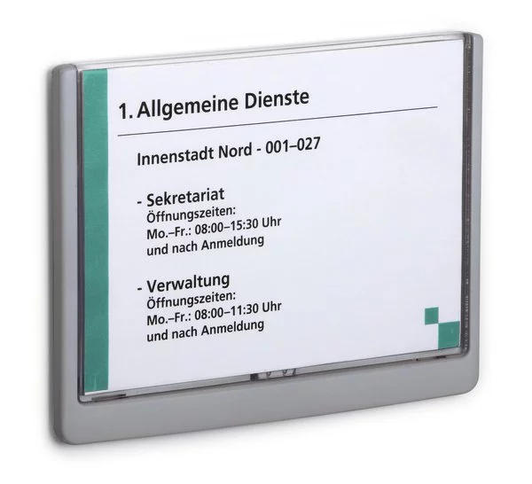 - Profesjonalna tabliczka informacyjna na drzwi lub obok drzwi o estetycznym i przejrzystym wzornictwie