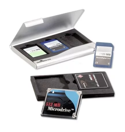- Pojemność: 3 karty Secure Digital (SD), 3 karty MultiMedia (MM) o formacie 24 x 32 x 2 mm lub 2 kart Compact Flash (CF), 2 Microdrive (MD)