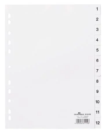 Przekładki A4 PP 1-12 Białe /Durable 611202