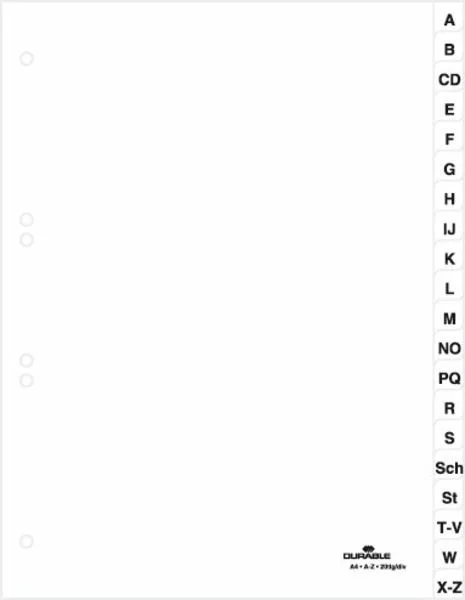 Przekładki do Segregatorów A-Z (20) Strona Tytułowa PP A4 Białe /Durable 615002