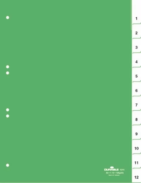 Przekładki A4 PP 1-12 Zielone /Durable 621005