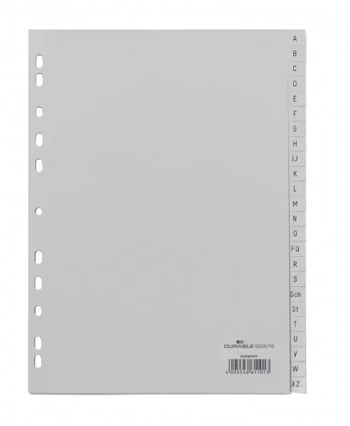 Przekładki do Segregatorów A-Z (24) PP A4 10szt. Szare /Durable 650810