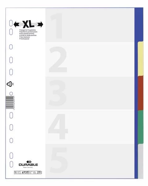 Przekładki do Segregatorów Czyste (5) Strona Tytułowa PP A4 Poszerzane Mix Kolorów /Durable 673727