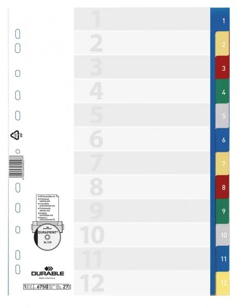 Przekładki A4 PP 1-12 Mix Kolorów /Durable 675027