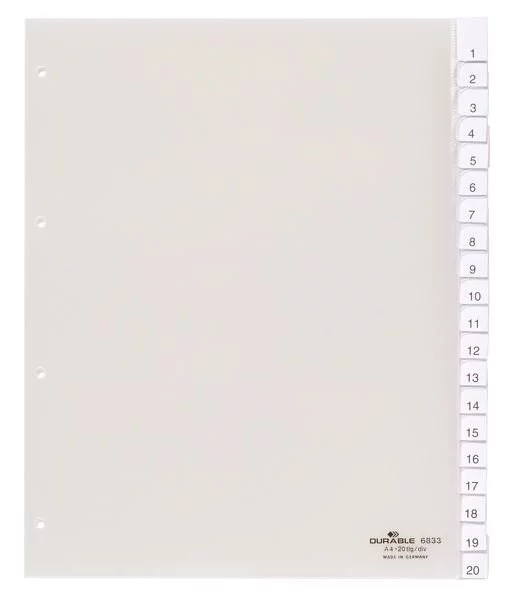 Przekładki do Segregatorów 1-20, A-Z (20) Indeksy Zgrzane A4 Poszerzone Przezroczyste /Durable 683319