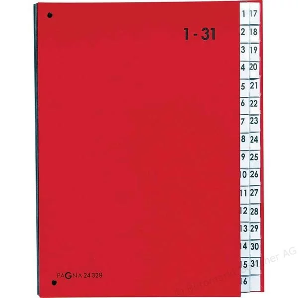 Teczka-Skorowidz Color do Opisu Twarda Okładka Indeksy 1-31 Czerwona /Pagna 2432901