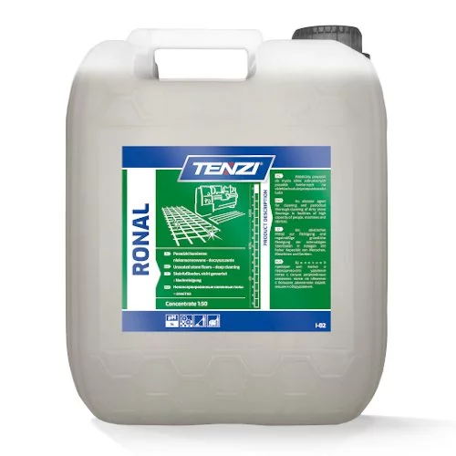 Tenzi Płyn do Czyszczenia Posadzek Ronal 10L to wysokoalkaliczny koncentrat opracowany z myślą o intensywnym doczyszczaniu kamiennych powierzchni w wymagających warunkach – od hal produkcyjnych, przez magazyny i garaże, aż po klatki schodowe i inne obiekty o dużym natężeniu ruchu. Preparat został skomponowany tak, aby skutecznie rozkładać i usuwać zabrudzenia pochodzenia olejowego, tłuszczowego i sadzowego z betonu, lastryka, gresu technicznego oraz innych twardych nawierzchni mineralnych. Dzięki formie koncentratu w dużym, 10-litrowym opakowaniu pozwala na przygotowanie wielu litrów roztworu roboczego, co znacząco obniża koszt pojedynczego mycia i sprawia, że produkt jest szczególnie opłacalny w zastosowaniach profesjonalnych. Ronal doskonale sprawdza się zarówno w bieżącej pielęgnacji, jak i przy gruntownych pracach porządkowych, gdy posadzka jest mocno zaniedbana lub pokryta wieloletnimi warstwami zanieczyszczeń. Preparat nie tworzy smug, dzięki czemu po zakończeniu mycia powierzchnia pozostaje optycznie czysta, równomierna i przygotowana do dalszej eksploatacji lub zabezpieczenia innymi środkami.