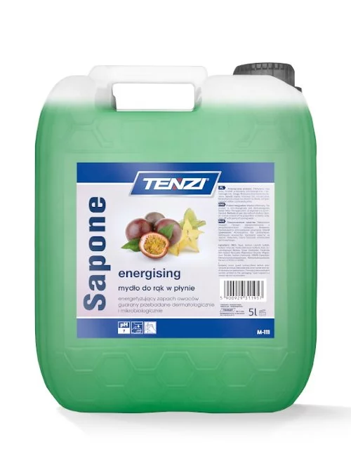 - Mydło w płynie TENZI Sapone Energizing 5L, do rąk i ciała, o zapachu owoców guarany. Zawiera witaminy A+E i glicerynę, nawilża, nie podrażnia, dla alergików, przebadane, z atestem PZH.