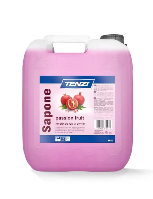 - Mydło w płynie TENZI Sapone Passion Fruit 5L do rąk i ciała, z witaminami A+E i gliceryną. Delikatne, nawilżające, przebadane mikrobiologicznie, dla alergików, do dozowników w obiektach publicznych.