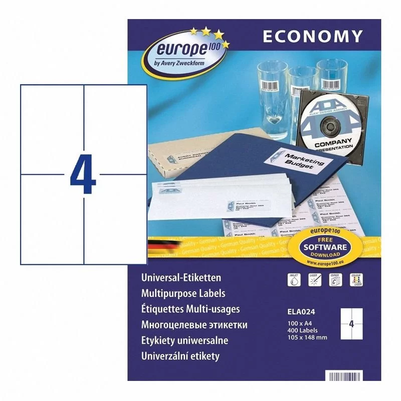 Etykiety, samoprzylepne Economy Europe100 by Avery Zweckform ELA024 z linii Economy, kolor biały