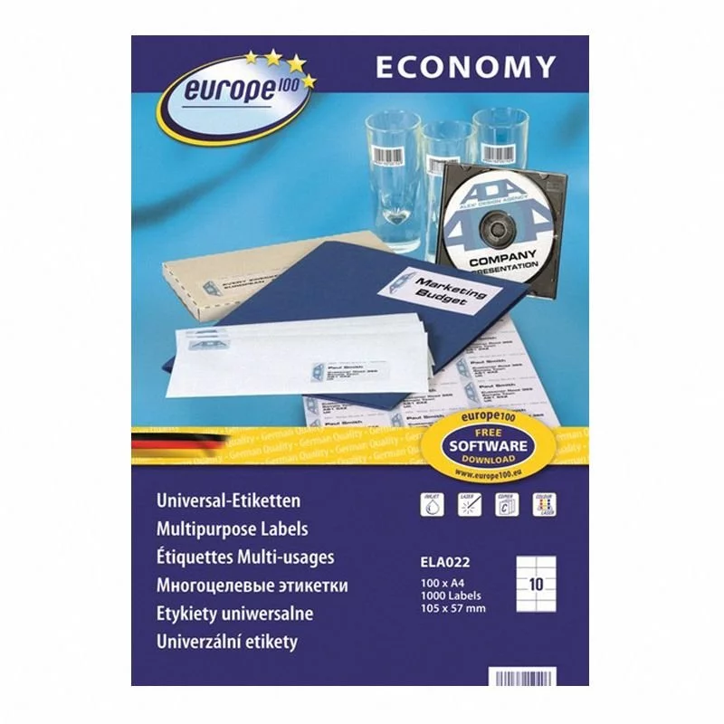 Etykiety, samoprzylepne Europe100 by Avery Zweckform ELA022 z linii Economy, kolor biały