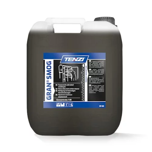 Tenzi Gran Smog 5L to profesjonalny, silnie skoncentrowany preparat przeznaczony do usuwania najbardziej wymagających zabrudzeń z piekarników, komór wędzarniczych, kominków i innych powierzchni narażonych na działanie wysokiej temperatury oraz dymu. Skutecznie rozpuszcza wieloletnie, tłuste osady, smolistą sadzę i przypalenia, które powstają podczas intensywnej eksploatacji urządzeń grzewczych i gastronomicznych. Dzięki starannie dobranej formule z inhibitorami korozji, środek radzi sobie zarówno z bieżącym myciem, jak i z doczyszczaniem wyjątkowo trudnych, nawarstwionych zabrudzeń, pozostawiając podłoże czyste i lśniące. Produkt toleruje twardą wodę, ulega biodegradacji, posiada neutralny zapach oraz atest PZH, co sprawia, że nadaje się do stosowania w wymagającym środowisku profesjonalnej gastronomii, zakładów przetwórstwa spożywczego i wędzarni, a jednocześnie świetnie sprawdzi się również w przydomowych kominkach, grillach czy piecach.
