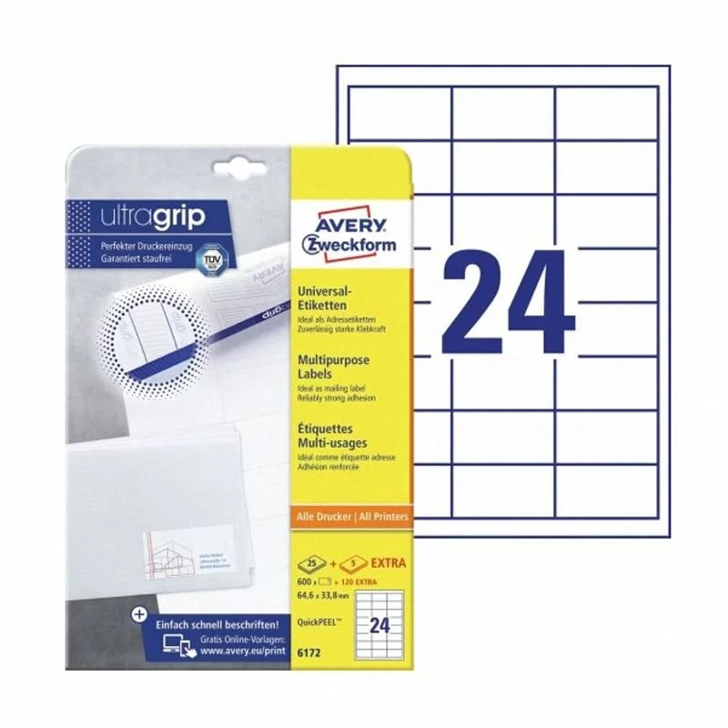 - Etykiety samoprzylepne, uniwersalne Avery Zweckform QuickPeel 6172 w kolorze białym. Łatwe w przyklejaniu i odklejaniu. Gwarancja trwałego, odpornego na ścieranie druku. Do zastosowania w drukarkach laserowych oraz kopiarkach.