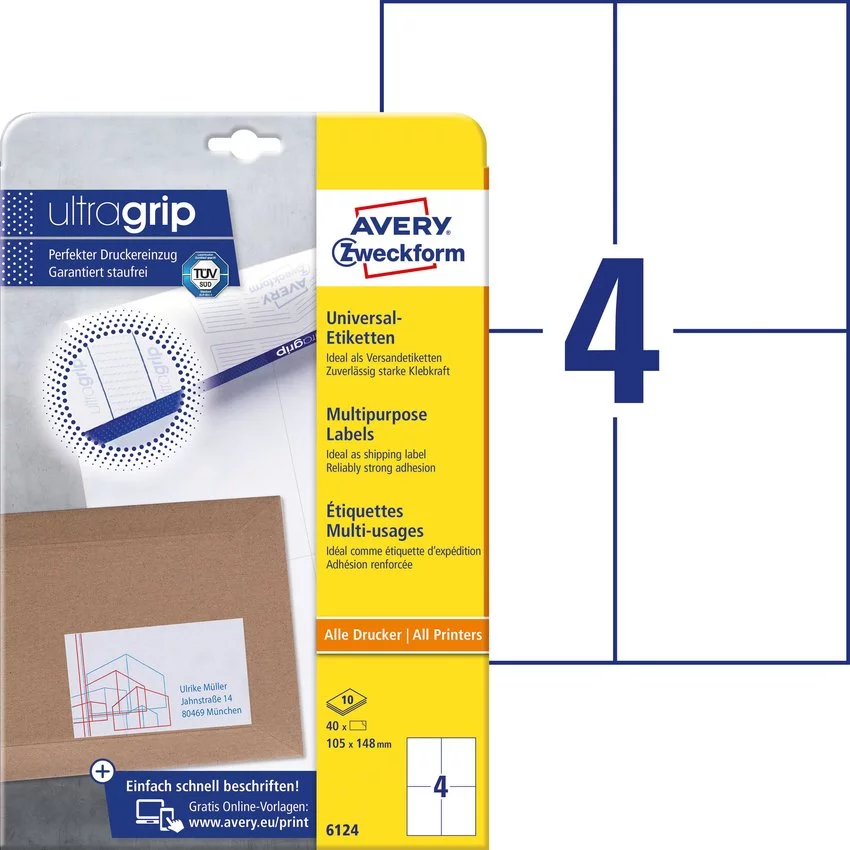 - Etykiety samoprzylepne, uniwersalne Avery Zweckform QuickPeel 6124 w kolorze białym. Łatwe w przyklejaniu i odklejaniu. Gwarancja trwałego, odpornego na ścieranie druku. Do zastosowania w drukarkach laserowych oraz kopiarkach.