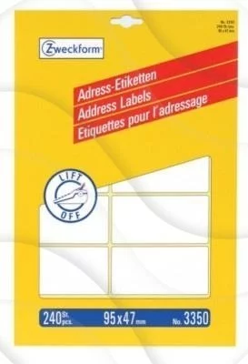 - Etykiety adresowe do maszyn do pisania oraz drukarek igłowych Avery Zweckform 3350. Idealne w sytuacji, gdy szybko potrzebujesz zaadresować korespondencję.